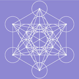 Geometrische Darstellung des Metatron-Würfels mit verbundenen Kreisen und Linien in einer symmetrischen Anordnung.